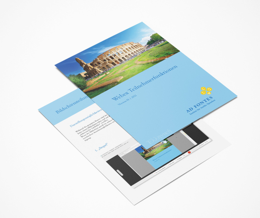 Sämtliche Online-Meetings des Latein-Dualkurses (das Willkommens-Meeting sowie die Übungsstunden) werden mit der Konferenzsoftware "Cisco Webex" durchgeführt. Darüber hinaus gibt es eine Webex-Gruppe, zu welcher lediglich die Teilnehmer des laufenden Lateinkurses Zugang besitzen und in welcher Informationen während der Kursphase zur Verfügung gestellt werden.
